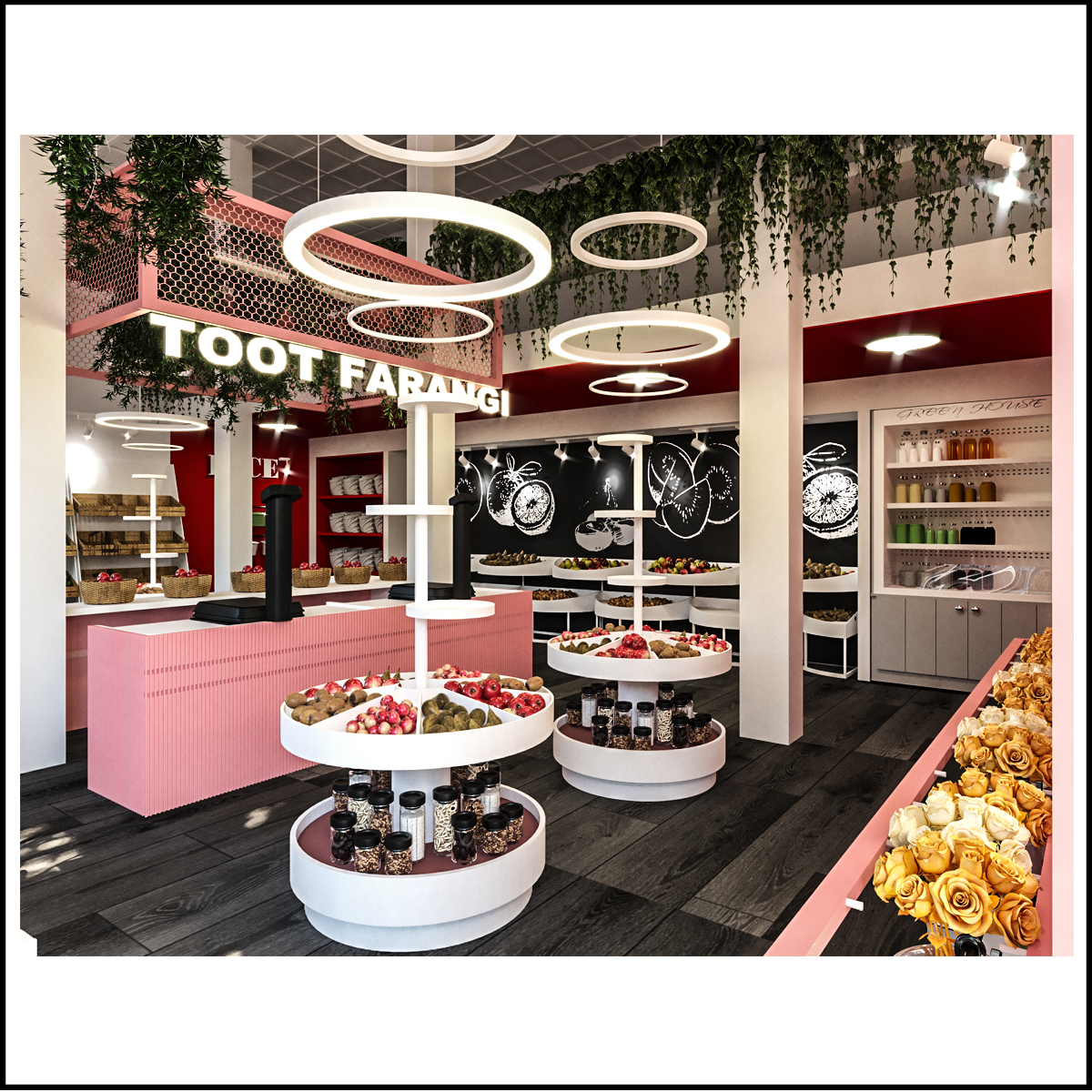 طراحی فروشگاه میوه “توتفرنگی” – نوسازی با رویکرد مدرن و عملکردی