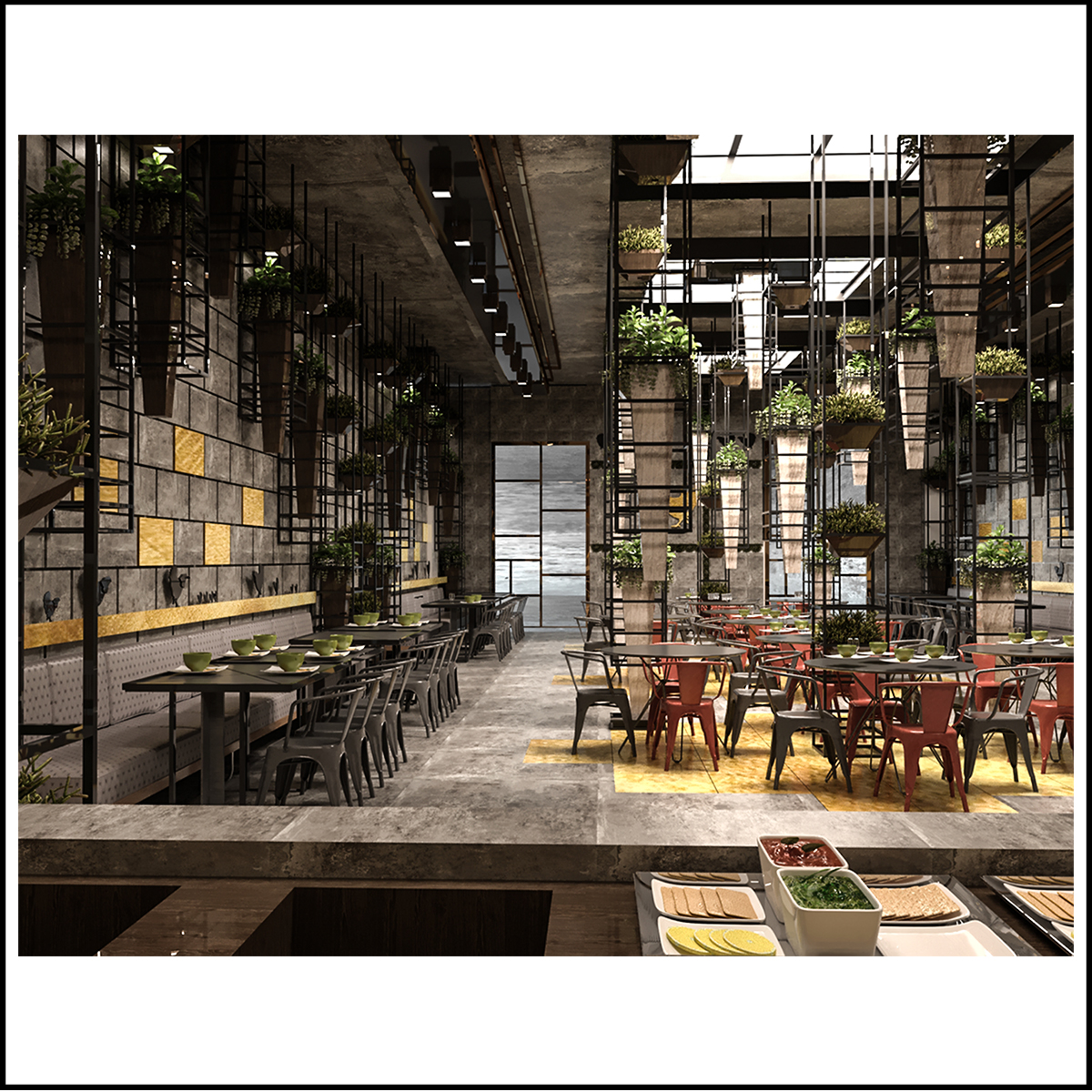 استفاده از رنگ های مناسب برای فست فود و فضای کافه در پروزه مد نظر بوده است .