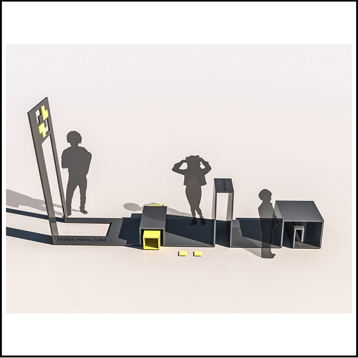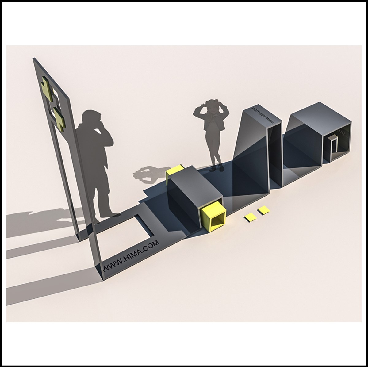 هدف از این پروژه ایجادمبلمان فضای عمومی مختص برند هیما بوده است . برند هیما یک شرکت صنایع دستی بود که با توجه به موقعیت پروژه در بام لند تهران به دنبال آن بود تا مبلمان اختصاصی خود را در فضای باز محوطه طراحی و اجرا کند . در طی روند طراحی پروژه اتود های مختلفی برای کار زده شده که یکی از موارد مورد تایید بر گرفته از نام برند است که توسط ورق خم شده طراحی و در دست اجرا است .